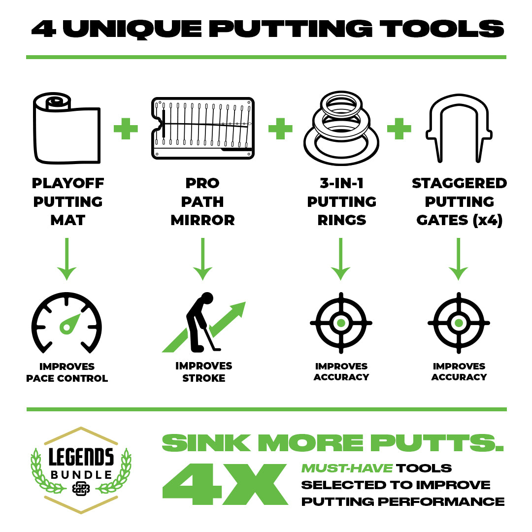 The Pro Path Putting Mirror and Play-Off Putting Mat work together to refine your stroke mechanics, posture, and control. Perfect your setup, develop a repeatable putting path, and lower your scores faster.